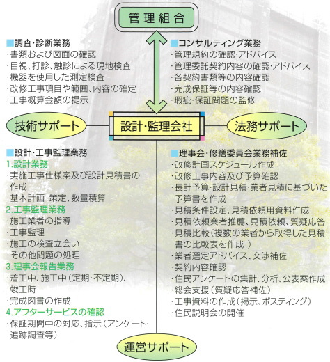 建物保全センターでは、改修設計の提案から合意形成のお手伝い、業者選定のアドバイスなどを行うマンション修繕のプロフェッショナルとして、多くの管理組合様から業務の要請を受けております。